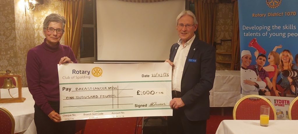 Spalding Rotary Club have presented £1,000 to the Breast Cancer Now charity.