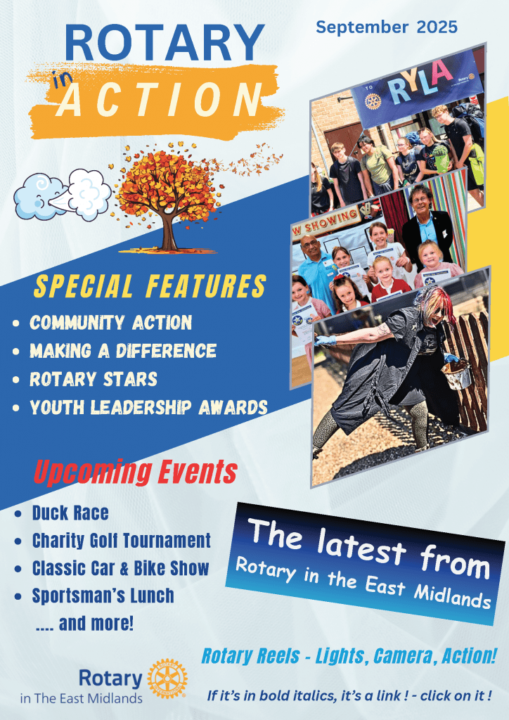 Our Rotary in Action newsletter has features about our charity work across the East Midlands district that support local, national and international projects.