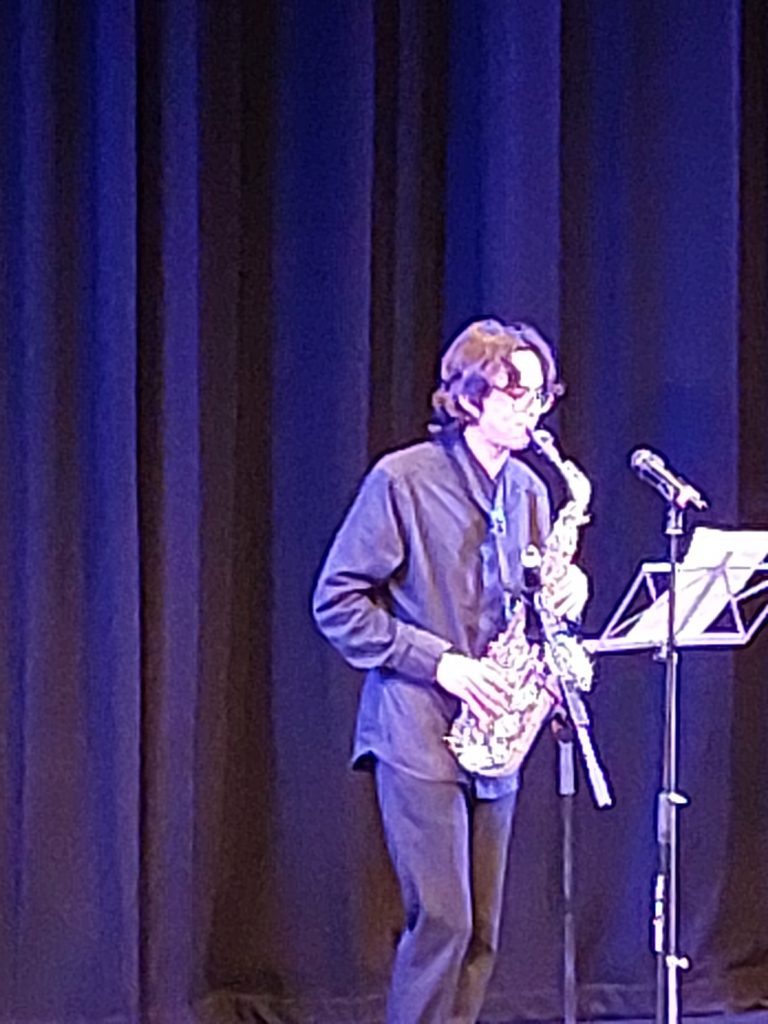 Next came a brand new duo. Saxophonist Ardern Little and pianist David Schofiield only met a few weeks ago.  They gave soft jazz renditions of ‘That Old Feeling,’ ‘Autumn Leaves ‘and ‘Fly Me to The Moon’.
