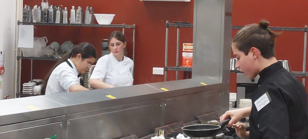The kitchen facilities at the Grammar school provided a great backdrop as the young chefs got underway. Before long the aromas of Italian herbs were competing with the spices of South Asia. The competitors had 90 minutes to produce a main course and dessert. The only sounds were the clanging of saucepans and hissing of steam as the chefs remained quietly focused on their tasks and cooking times.