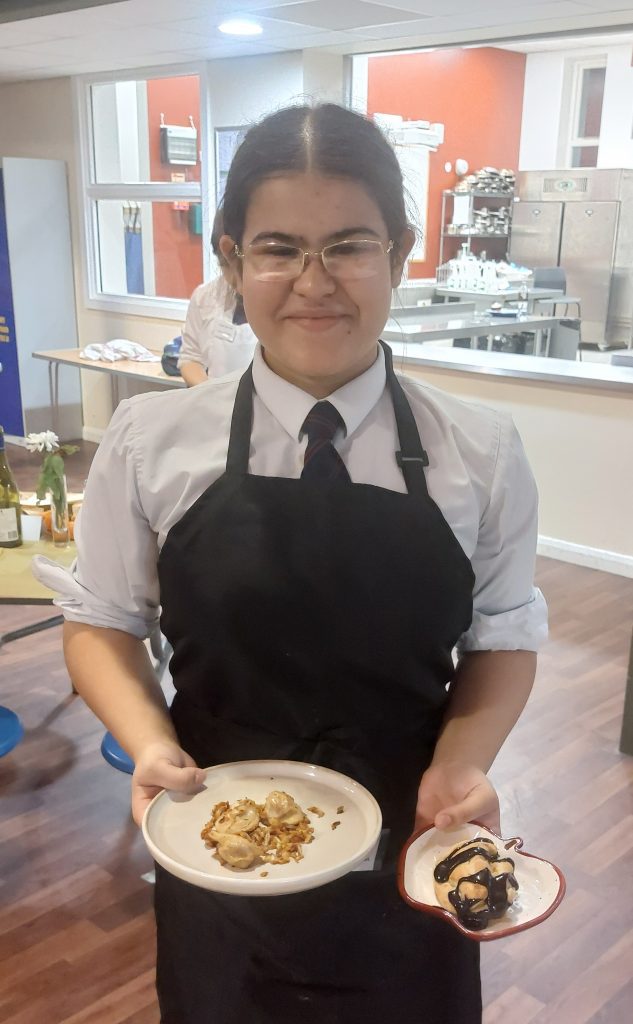 Second prize was awarded to Isla Stockdale of Spalding High School for their ‘Autumn Dinner’ of handmade tagliatelli in a butternut squash sauce with herby roasted potatoes. This was followed by spiced pear and apple oat crumble.